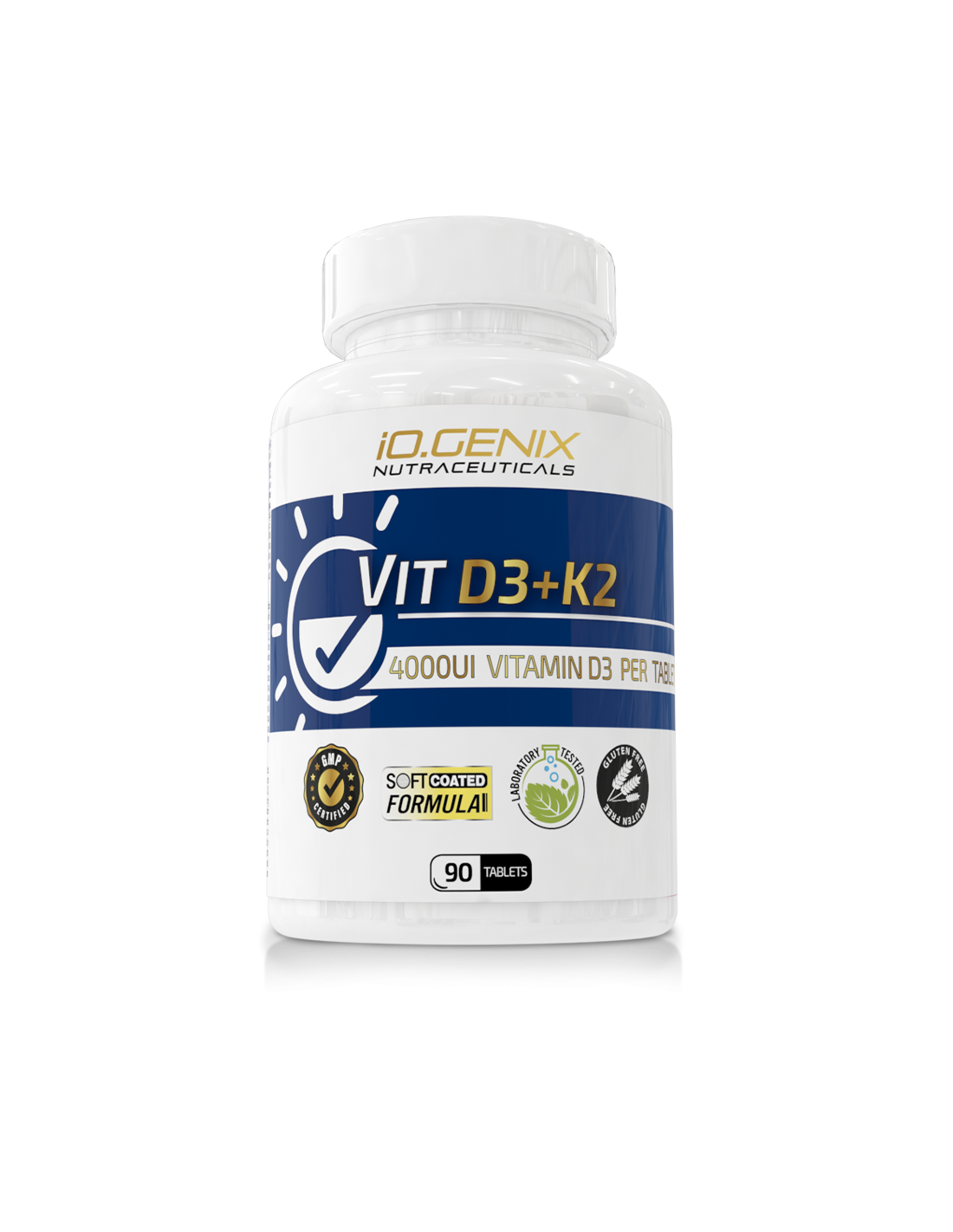 La vitamina D3 es una vitamina liposoluble imprescindible para el metabolismo del calcio y el fósforo. La vitamina K2 (en su forma MK-7) pertenece al grupo de las vitaminas K y participa de forma clave en la coagulación sanguínea y en el mantenimiento de los huesos.
